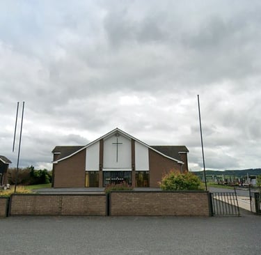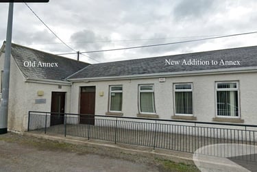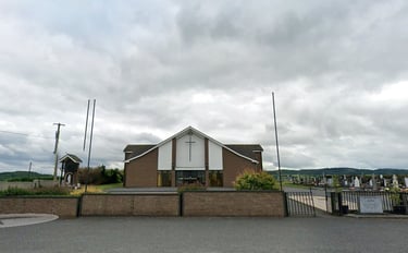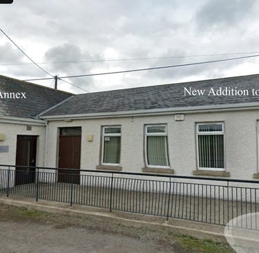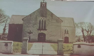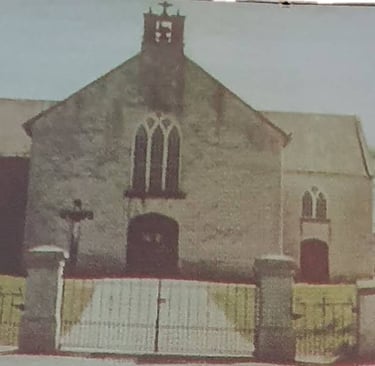 The local Catholic Church, St, Patricks was about half mile walk, or 1.06 kilometers and Paddy was fortunate to find a photo of the chuch as it was bdfore it was rebuilt. The annex where Paddy had the boxing practice is still there with an addition added to the right.